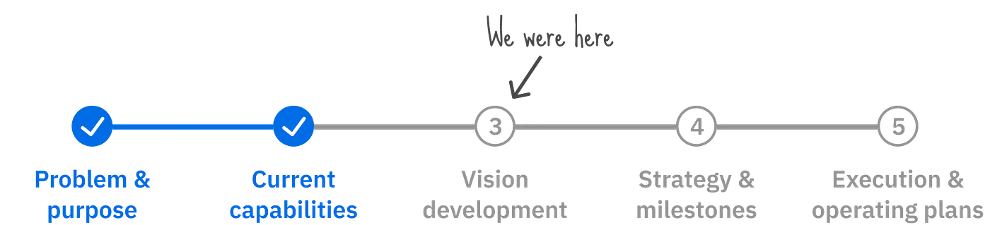 The organization had already identified the purpose, current capabilities, and needed help defining the vision. This would help to inform the strategy and execution.